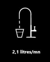 De l’eau fraîche et purifiée à tout moment. 2,1 litres d’eau produit chaque minute.